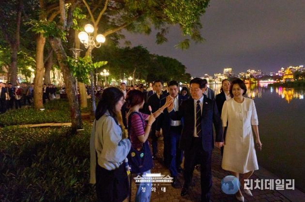 이어 이 대통령 부부는 인근 식당으로 자리를 옮겨 쌀국수와 볶음밥으로 저녁 식사를 함께했다. 이후 호안끼엠 호수 일대를 산책하며 베트남에서의 소중한 추억을 쌓았으며, 산책을 마친 뒤에는 베트남 국민들에게 다시 한번 손을 흔들어 인사를 전하며 일정을 마무리했다.