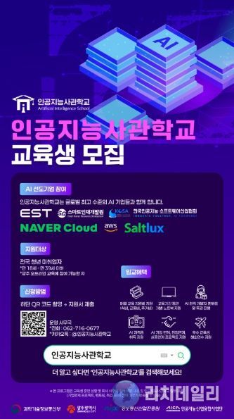 광주광역시(시장 강기정)와 광주인공지능사관학교는 제7기 AI사관학교 교육생 220명을 오는 3월31일까지 모집한다. 이번에 모집하는 7기는 교육 체계와 투자 구조를 전면 개편한 ‘AI 최고급 과정’으로 운영된다.
