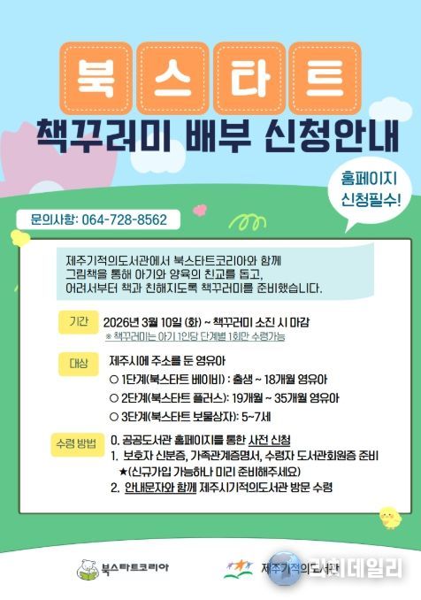 리치데일리 김상현 기자 | 제주기적의도서관은 영유아의 평생 독서 습관 형성을 위해 북스타트 사업 ‘내 생애 첫 선물, 책꾸러미’ 배부 대상을 확대한다.