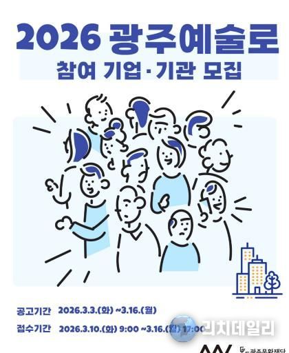 리치데일리 김상현 기자 | 광주문화재단은 예술인과 기업·기관이 확장된 파트너십 기반의 협업을 통해 예술인의 직업 안정화를 지원하고 예술적·사회적 가치를 확산하는 ‘2026 광주예술로’ 사업에 참여할 기업·기관과 예술인을 공개 모집한다.