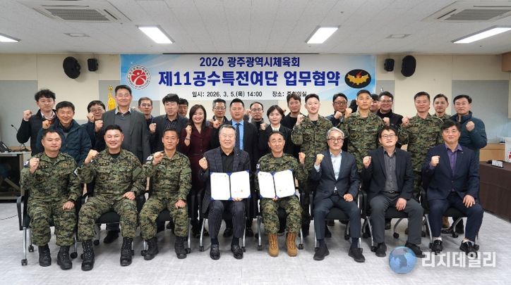 리치데일리 김상현 기자 | 광주광역시체육회(회장 전갑수)는 5일 14시 체육회관 2층 중회의실에서 육군특수전사령부 황금박쥐부대(여단장 조웅)과 업무협약을 체결했다고 밝혔다.