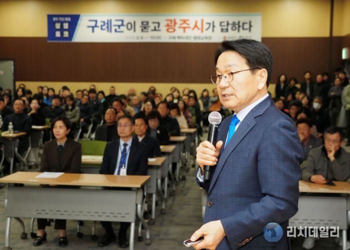 리치데일리 김상현 기자 | 광주광역시는 6일 구례군 백두대간생태교육장 세미나실에서 ‘광주전남 통합 구례군 상생토크’를 열고, 구례 발전 전략과 통합 이후 변화에 대해 구례군민들과 소통했다.