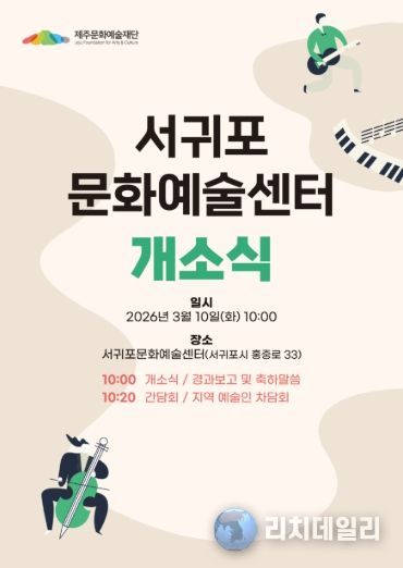 리치데일리 김상현 기자 | 제주문화예술재단은 오는 3월 10일 오전 10시 서귀포문화예술센터(서귀포시 홍중로 33)에서 개소식을 개최한다. 재단은 이번 개소를 계기로 산남지역 문화예술 지원 기능을 전담하는 거점 체계를 본격 운영할 계획이다.