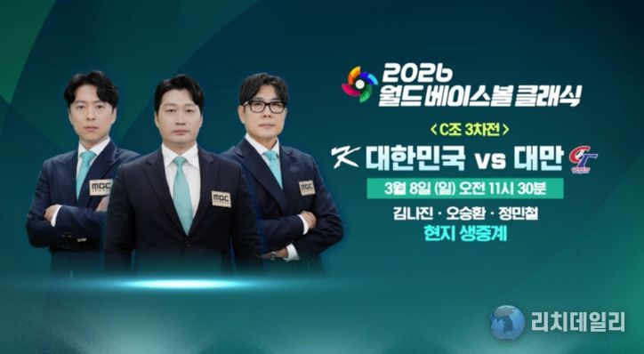 리치데일리 김상현 기자 | 2026 월드 베이스볼 클래식(WBC) 1라운드에서 대한민국이 8강 진출을 향한 중요한 승부를 앞두고 있다. MBC는 오늘(8일) 오전 11시 30분부터 일본 도쿄돔에서 열리는 대한민국과 대만의 WBC 1라운드 3차전 경기를 도쿄 현지에서 생중계한다.