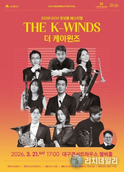 대구문화예술진흥원 대구콘서트하우스가 3월 21일(토) 오후 5시 챔버홀에서 ‘DCH 앙상블 페스티벌 – 더 케이윈즈(The K-Winds)’ 공연을 개최한다. DCH 앙상블 페스티벌은 다양한 실내악 편성을 통해 앙상블 음악의 결을 조명하는 기획으로, 앙상블 단체 고유의 해석과 사운드를 집중적으로 소개한다.