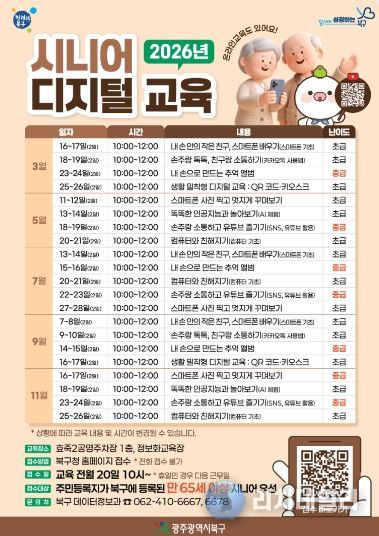 리치데일리 김상현 기자 | 광주광역시 북구가 급격한 디지털 전환으로 어려움을 겪는 어르신들에게 맞춤형 교육을 제공해 세대별 디지털 격차 완화에 나선다.