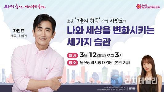 리치데일리 김상현 기자 | 울산시는 3월 12일 오후 3시 차인표 배우 겸 작가의 첫 강연을 시작으로 올해 총 8회의 명사 초청 강연을 진행한다고 밝혔다.