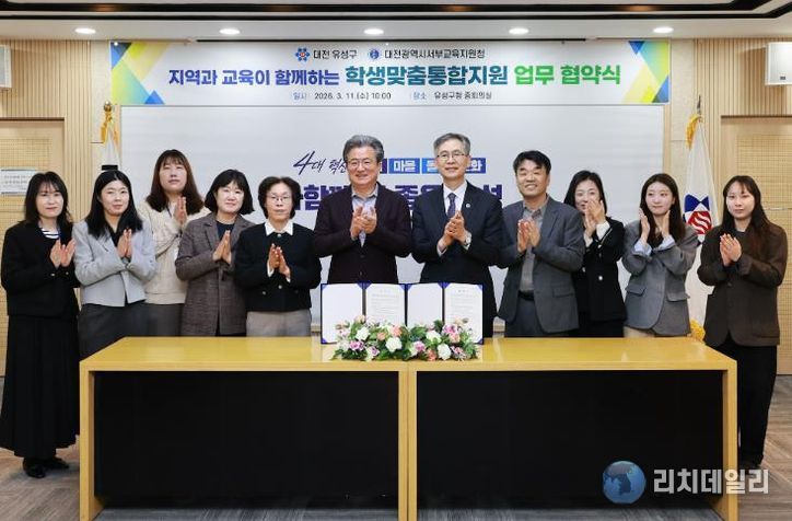 리치데일리 김상현 기자 | 대전 유성구는 11일 유성구청 중회의실에서 대전서부교육지원청과 교육 취약 학생의 건강한 성장을 지원하기 위한 업무 협약을 체결했다.