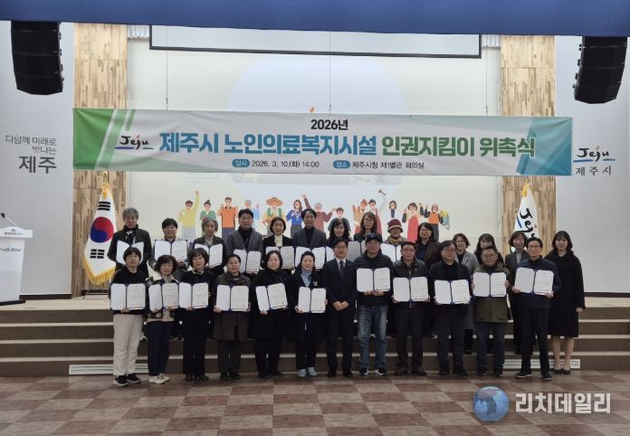 리치데일리 김상현 기자 | 제주시는 10일 시청 1별관 회의실에서 ‘2026년 노인의료복지시설 인권지킴이 위촉식’을 개최하고, 인권지킴이 20명을 위촉했다.