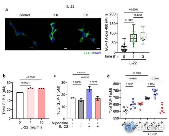 논문은 'Intestinal interleukin-22 enhances GLP-1 production via the STAT3 pathway to improve glucose homeostasis during high-fat diet induced obesity in a study with male mice'제목으로 지난 2월 21일 게재됐다.