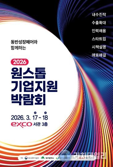 리치데일리 김상현 기자 | 대구광역시는 중소벤처기업부, 동반성장위원회와 함께 3월 17일부터 18일까지 이틀간 엑스코 서관(3층)에서 ‘2026 원스톱기업지원박람회’를 개최한다.