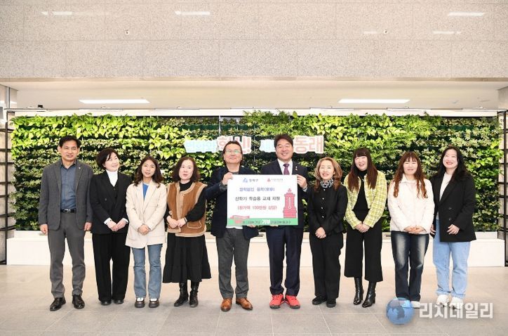 리치데일리 김상현 기자 | 부산 동래구는 지난 12일 장학법인 동학(이사장 남중현)으로부터 2026년 신학기를 맞아 100만 원 상당의 학습 교재를 기탁받아, 부산사회복지공동모금회를 통해 관내 저소득 가정 고등학생 20명에게 전달했다고 밝혔다.