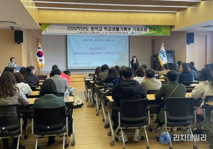 리치데일리 김상현 기자 | 제주시교육지원청은 16일 제주시교육지원청 대회의실에서 학교생활기록부의 공정성과 신뢰도 제고를 위해 제주시 관내 중학교 교원 96명 대상으로 ‘2026학년도 학교생활기록부 기재요령 연수’를 실시했다.