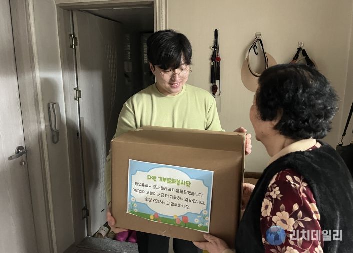 리치데일리 김상현 기자 | 다원 기부문화봉사단은 지난 15일, 동구 방촌동 일대 저소득 홀몸 어르신 세대를 직접 방문해 생필품 꾸러미 25상자(200만원 상당)를 전달했다.