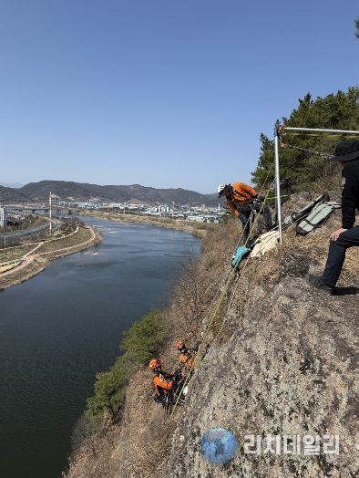 이번 훈련은 지반이 약해지는 해빙기에 발생하기 쉬운 암벽·절벽 추락 및 고립 사고를 가정하여 진행됐다.