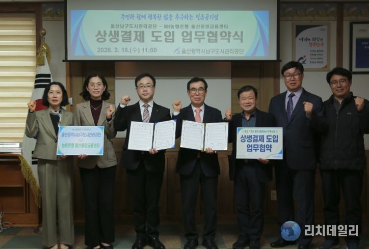 리치데일리 김상현 기자 | 울산남구도시관리공단은 18일 농협은행 울산중앙금융센터와 중소기업 상생환경 조성을 위해 상생결제 시스템 도입과 확산을 위한 업무협약을 체결했다.