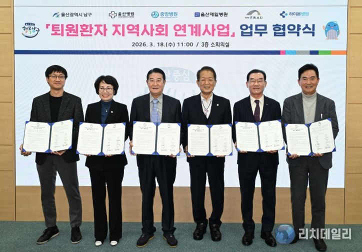 리치데일리 김상현 기자 | 울산 남구는 퇴원 환자의 지역사회 복귀와 안정적인 일상회복을 지원하기 위해 관내 5개 의료기관과 퇴원환자 지역사회 연계사업추진을 위한 업무협약을 18일 체결했다.