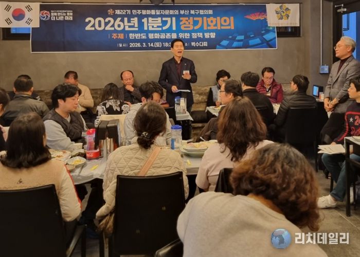 리치데일리 김상현 기자 | 민주평화통일자문회의 부산 북구협의회는 지난 14일 오후 6시 30분, 경남 통영에서 자문위원 31명이 참석한 가운데 ‘한반도 평화공존을 위한 대내외 정책 추진방향’을 주제로 ‘2026년 1분기 정기회의’를 개최했다.