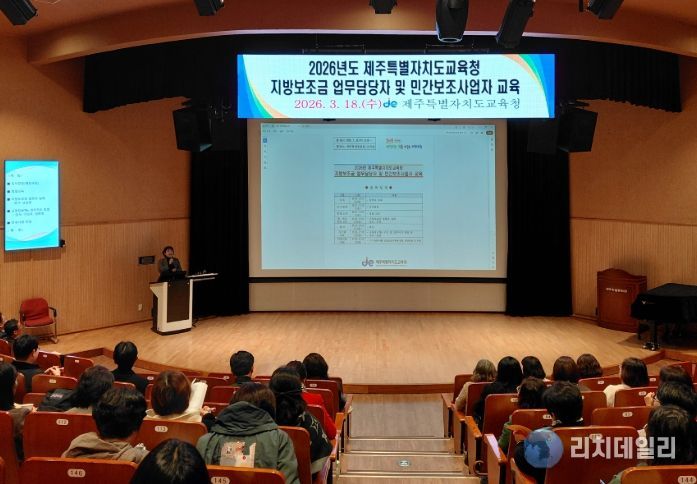 리치데일리 김상현 기자 | 제주특별자치도교육청은 18일 제주학생문화원 소극장에서 ‘2026년 지방보조금 업무담당자 및 민간보조사업자 자체 교육’을 실시했다.