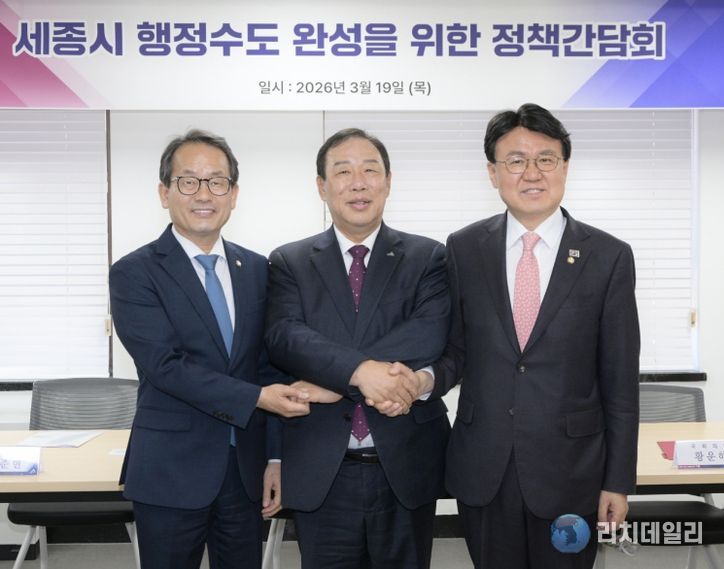 최민호 시장은 “우리 세 사람 모두 당적은 다르지만 세종을 걱정하는 마음은 하나”라며 “행정수도 완성을 위한 세종시의 노력에 강준현·황운하 의원의 입법 역량을 더해 세종의 밝은 미래를 함께 열어가자”고 당부했다.