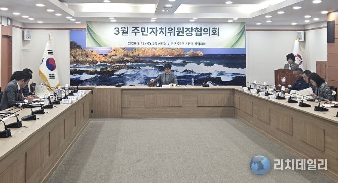 리치데일리 김상현 기자 | 동구 주민자치위원장 협의회(협의회장 최성국)는 3월 19일 오전 11시 동구청 상황실에서 주민자치위원장 협의회 3월 정기 회의를 개최했다.