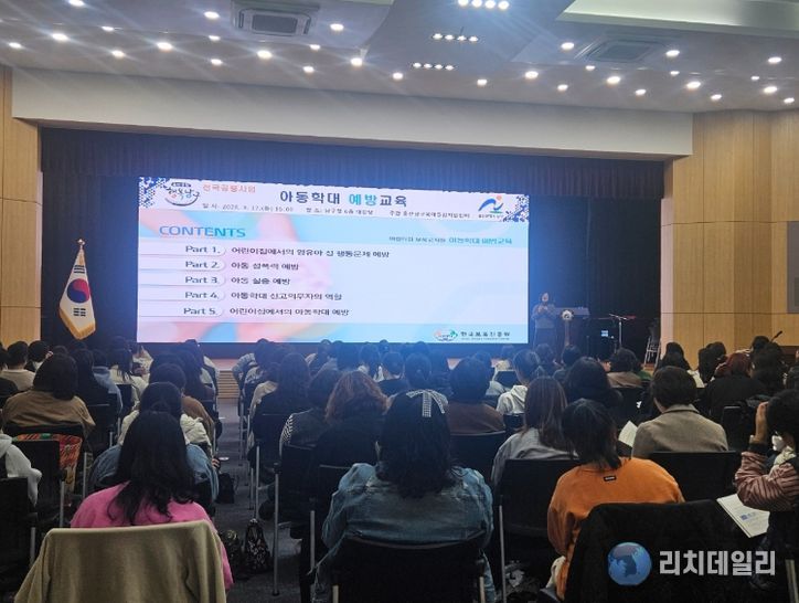 리치데일리 김상현 기자 | 울산 남구 육아종합지원센터는 남구청 6층 대강당에서 관내 어린이집 보육교직원 100명을 대상으로 아동학대예방 교육을 실시했다고 19일 밝혔다.