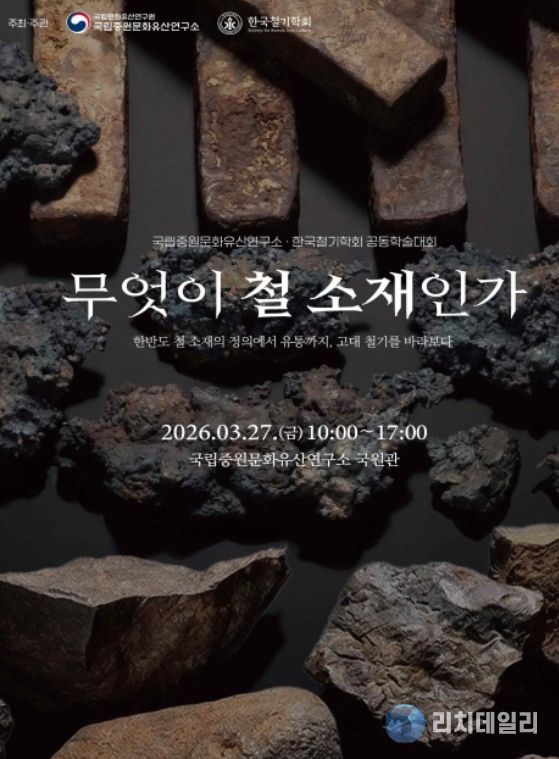 리치데일리 김상현 기자 | 국가유산청 국립문화유산연구원 국립중원문화유산연구소는 한국철기학회와 함께 2026년 3월 27일 오전 10시 국립중원문화유산연구소 국원관에서『무엇이 철 소재인가?』를 주제로 공동 학술대회를 개최한다.