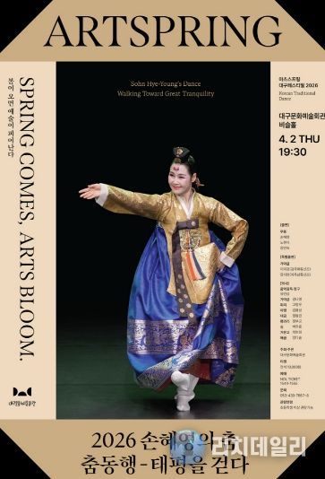 리치데일리 김상현 기자 | 대구문화예술진흥원 대구문화예술회관은 오는 4월 2일 오후 7시 30분, 대구문화예술회관 비슬홀에서 2026 손혜영의 춤 ‘춤동행, 태평을 걷다’를 개최한다.