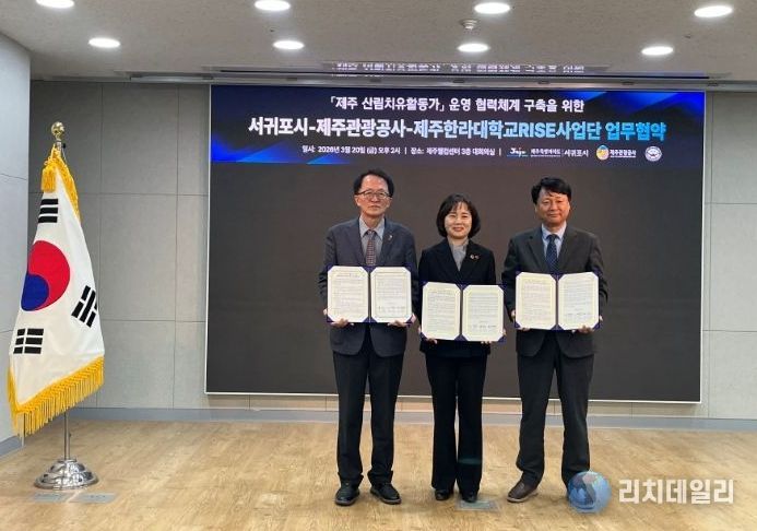 리치데일리 김상현 기자 | 서귀포시는 20일 제주관광공사, 제주한라대학교 RISE사업단과 함께 ‘제주 산림치유활동가 운영 협력체계 구축을 위한 업무협약’을 체결했다고 밝혔다.