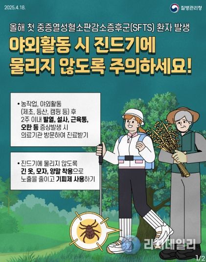 신상희 대구광역시 보건환경연구원장은 “대구·경북권에서 치명률이 높은 SFTS 환자가 지속적으로 발생하고 있다”며 “야외활동 시 긴 옷 착용, 기피제 사용 등 예방수칙을 철저히 준수해 달라”고 당부했다.