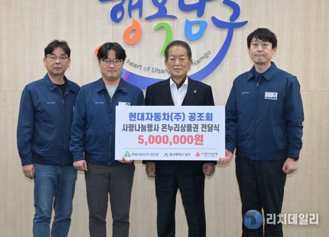 리치데일리 김상현 기자 | 상부상조의 정신으로 꾸준한 나눔을 이어가는 현대자동차(주) 공조회(회장 박상옥)는 23일 남구청을 방문해 관내 저소득층 지원을 위한 500만 원 상당의 온누리상품권을 전달했다.
