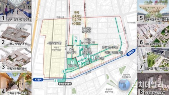 또 방치된 근대한옥을 직접 매입해 카페, 푸드 플레이스, 한옥스테이 등 누구나 즐길 수 있는 다양한 테마의 복합문화공간을 만들고 ‘한옥마당’, ‘한옥화장실’과 같은 한옥 골목길 정비로 기존에 청량리 일대 시장만이 가지고 있던 고유의 역사성과 정체성을 되살릴 예정이다.