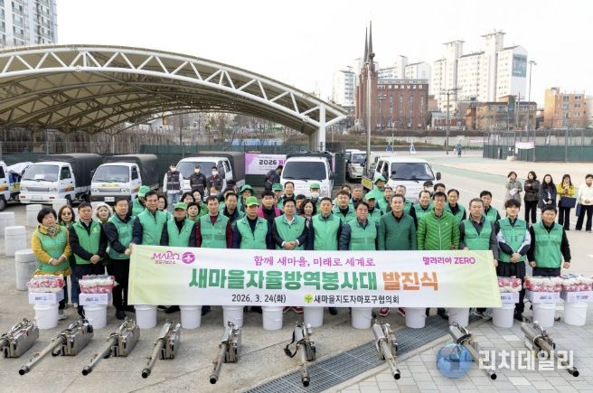 리치데일리 김상현 기자 | 박강수 마포구청장은 3월 24일 아침, 망원유수지 체육공원에서 열린 ‘2026년 새마을자율방역봉사대 발진식’에 참석해 대원들을 격려했다.