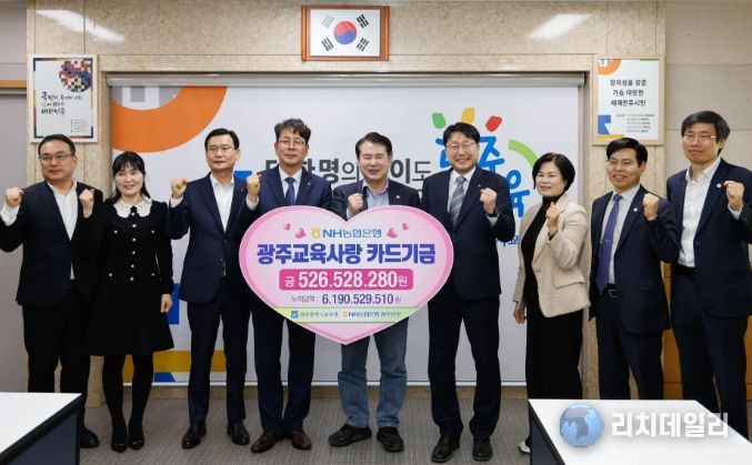 리치데일리 김상현 기자 | 광주시교육청은 지난 20일 본청 상황실에서 NH농협은행으로부터 지난해 광주교육사랑카드 적립금 5억2천652만원을 전달받았다.