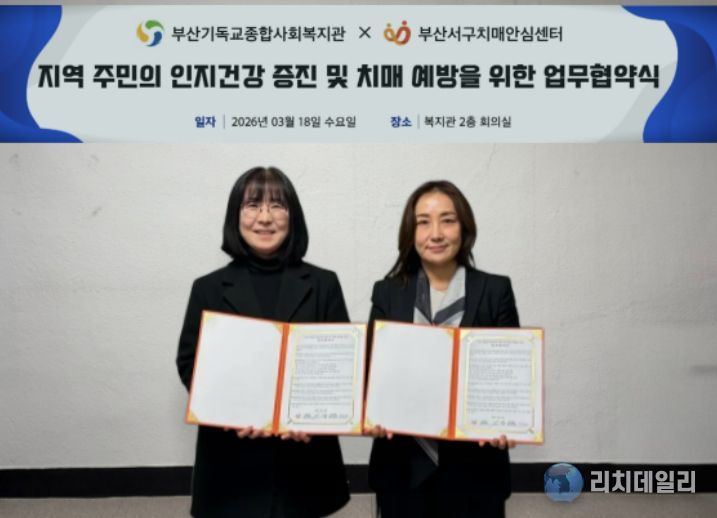 리치데일리 김상현 기자 | 부산 서구치매안심센터(센터장 양태인)는 지난 18일 부산기독교종합사회복지관(관장 김정자)과 치매 예방 및 인지건강 증진을 위한 업무협약(MOU)을 체결했다.