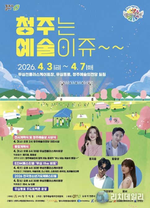 리치데일리 김상현 기자 | 청주시의 대표 봄 축제인 제23회 청주예술제가 오는 4월 3일부터 7일까지 5일간 무심천 롤러스케이트장(무심동로 일부)과 청주예술의전당 일원에서 개최된다.
