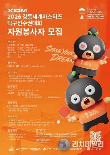 리치데일리 김상현 기자 | 강릉시에서 열리는 ‘XIOM 강릉세계마스터즈탁구선수권대회’의 성공적인 개최를 위해 대회 조직위원회가 3월 23일부터 4월 17일까지 자원봉사자를 모집한다고 밝혔다.
