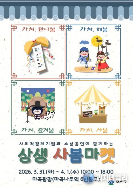 리치데일리 김상현 기자 | 서울 강서구는 3월 31일부터 4월 1일 이틀간, 오전 10시부터 오후 6시까지 마곡광장(마곡나루역 6번 출구)에서 ‘2026 사회적경제기업·소상공인 상생 사봄마켓’을 개최한다.