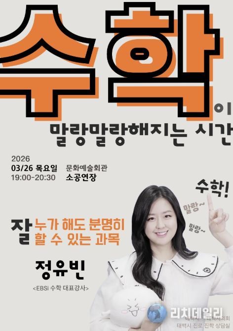 리치데일리 김상현 기자 | 태백시는 오는 3월 26일 오후 7시부터 8시 30분까지 태백문화예술회관 소공연장에서 EBSi 정유빈 강사를 초청해 특별 강연을 개최한다고 밝혔다.