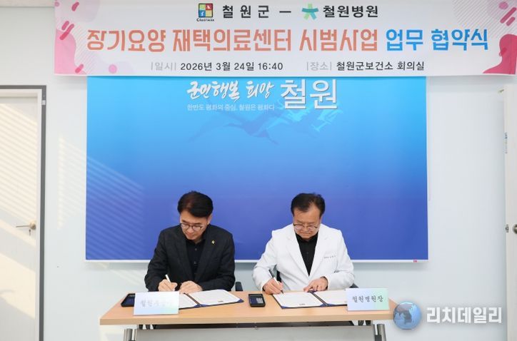 철원군은 3월 24일 오후 철원군보건소 회의실에서 철원병원과 장기요양 재택의료센터 시범사업 업무협약을 체결했다. 이번 협약은 병원을 찾기 어려운 주민들이 가정에서도 필요한 진료와 건강관리를 받을 수 있도록 지원하기 위해 마련됐다.
