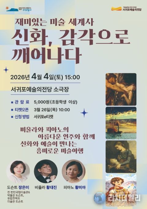서귀포예술의전당 관계자는 “이번 특강을 통해 시민들이 멀게만 느껴졌던 고전 신화와 무심코 지나쳤던 지폐 속 그림에서 자신만의 예술적 가치를 발견하는 소중한 시간이 되길 바란다”라고 밝혔다.