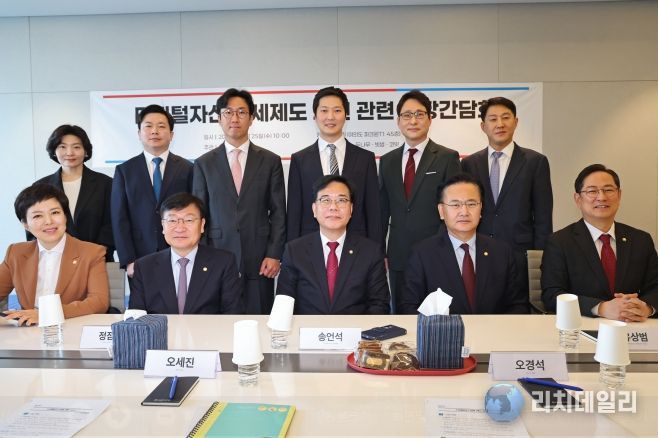 이날 간담회에는 정점식 정책위의장, 유상범 원내운영수석, 김은혜 원내정책수석, 박수영 국회 재정경제기획위원회 간사, 박충권 원내수석대변인, 최보윤 의원(디지털자산 밸류업 특위) 등이 참석했다.