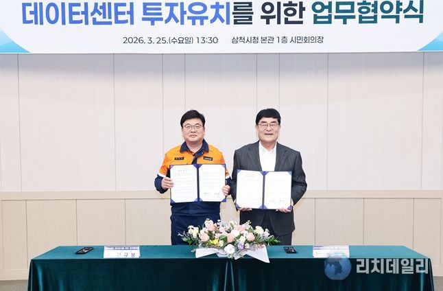 리치데일리 김상현 기자 | 삼척시와 삼척블루파워는 25일 삼척시청 시민회의장에서 “데이터센터 투자유치를 위한 업무협약(MOU)”을 체결했다.