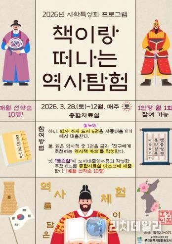 리치데일리 김상현 기자 | 부산광역시립반송도서관은 오는 28일부터 12월까지 매주 토요일 도서관 종합자료실에서 도서관 이용자를 대상으로 사학 특성화 프로그램 ‘책이랑 떠나는 역사탐험’을 운영한다.