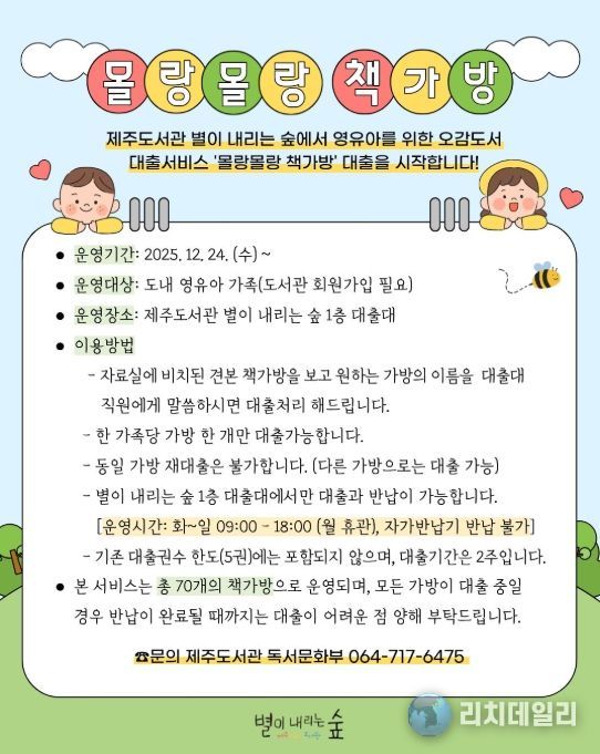 리치데일리 김상현 기자 | 제주도교육청 제주도서관이 운영 중인 영유아 오감 도서 대출서비스 ‘몰랑몰랑 책가방’이 이용자들의 꾸준한 호응을 얻고 있다.