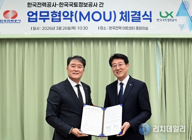 한전은 3월 26일 서울 한전 아트센터에서 LX와 ‘전력설비 위치정보 관리 협력을 위한 업무협약(MOU)’을 체결했다. 이날 협약식에는 정치교 한전 안전&영업배전부사장과 이주화 LX 부사장이 참석했다.