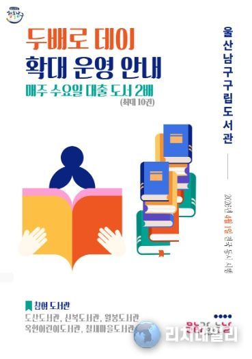 리치데일리 김상현 기자 | 울산 남구는 시민들의 독서 문화 확산과 도서관 이용 활성화를 위해 ‘두배로 데이’를 기존 월 1회에서 주 1회로 확대 운영한다.