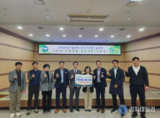 리치데일리 김상현 기자 | 고창군농업기술센터는 지난 26일 장수군농업기술센터와 함께 ‘고향사랑 기부금 상호 기탁식’을 추진했다고 밝혔다.