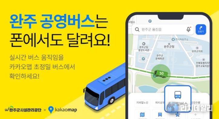 리치데일리 김상현 기자 | 완주군시설관리공단이 지난 26일부터 모바일 지도 앱인 ‘카카오맵’을 통해 완주군 마을버스의 실시간 이동 정보를 제공하며 대중교통 이용 편의를 한 단계 높이고 있다.