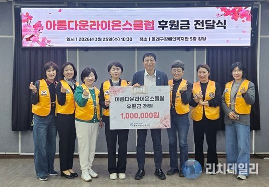 최정주 회장은 “봄을 맞아 어려운 이웃들에게 희망을 전하고자 동래구장애인복지관에 성금을 기탁했다”라며 “앞으로도 아름다운라이온스클럽은 지역사회 곳곳에 실질적인 도움을 줄 수 있는 나눔 활동을 이어가겠다”라고 말했다.
